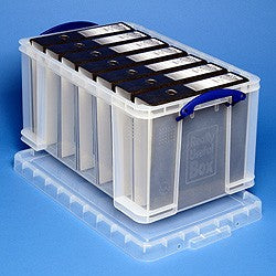 48L clear plastic really useful storage box. External measurements: 600l x 400w x 315h mm Internal measurements: 530l x 325w x 289h mm Weight: 2.6 Kg Colour: Clear