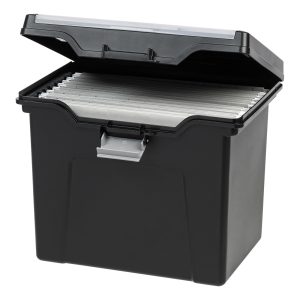 Sturdy, durable plastic file boxes maximize your file storage space File storage container holds letter hanging file folders Plastic file storage split-lid makes it easy to access contents Save space by stacking multiple hanging file boxes on top of each other Dimensions: 22.80″L x 13.74″W x 10.75″H