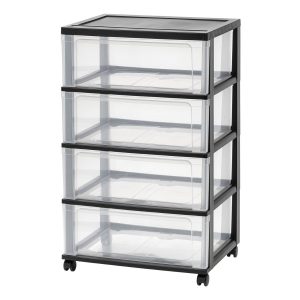 IRIS USA Medium 3-Drawer Cart with Organizer Top has 3 deep drawers.Deep drawer measurements are 14” x 12” x 7” Each deep drawer weight capacity is 10 lbs. Built-in organizer top for accessibility; clear drawers to easily identify contents Easy glide casters for added mobility and drawer stops to keep drawers secure Dimensions: 14.25″L x…