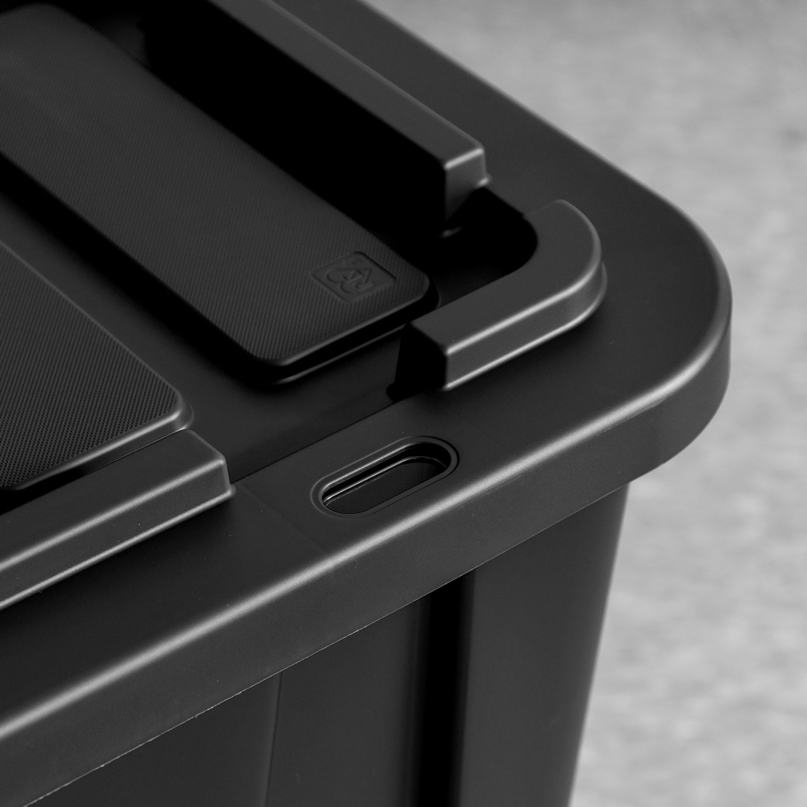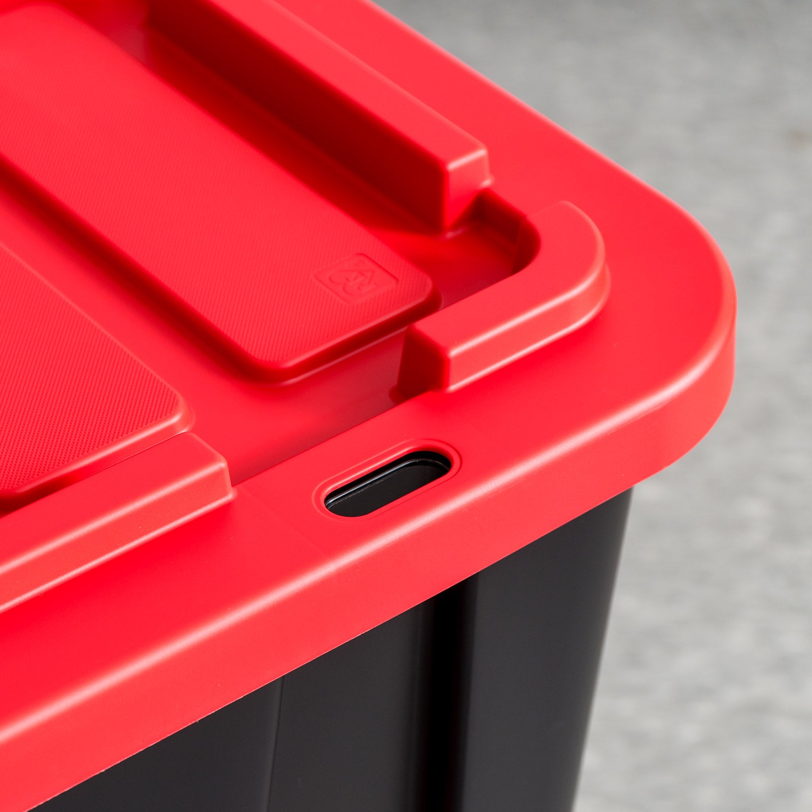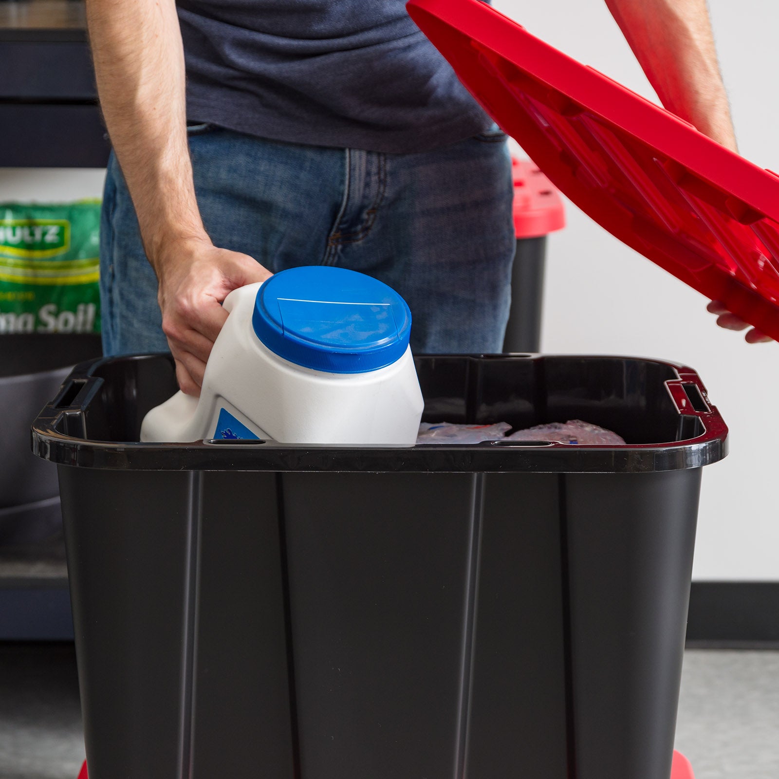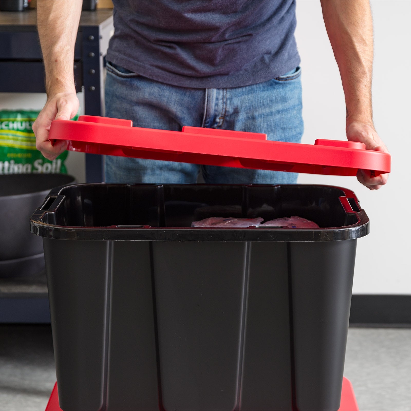 - VERSATILE ORGANIZER – 11.5 Gallon Durable Heavy-Duty Storage Plastic Bin Tote Organizing Container with Durable Lid and Secure Latching Buckles preserve and protect valuables. Maximize the garage or any limited space with Made In USA Heavy-Duty tote to organize. The strong lid, body, and buckle combo blocks moisture, dust, liquids, and insects. Perfect to store and transport tools, camping gear, blankets, dog/ cat food, rice, flour, and more in or from the garage, basement, offices, and more.
