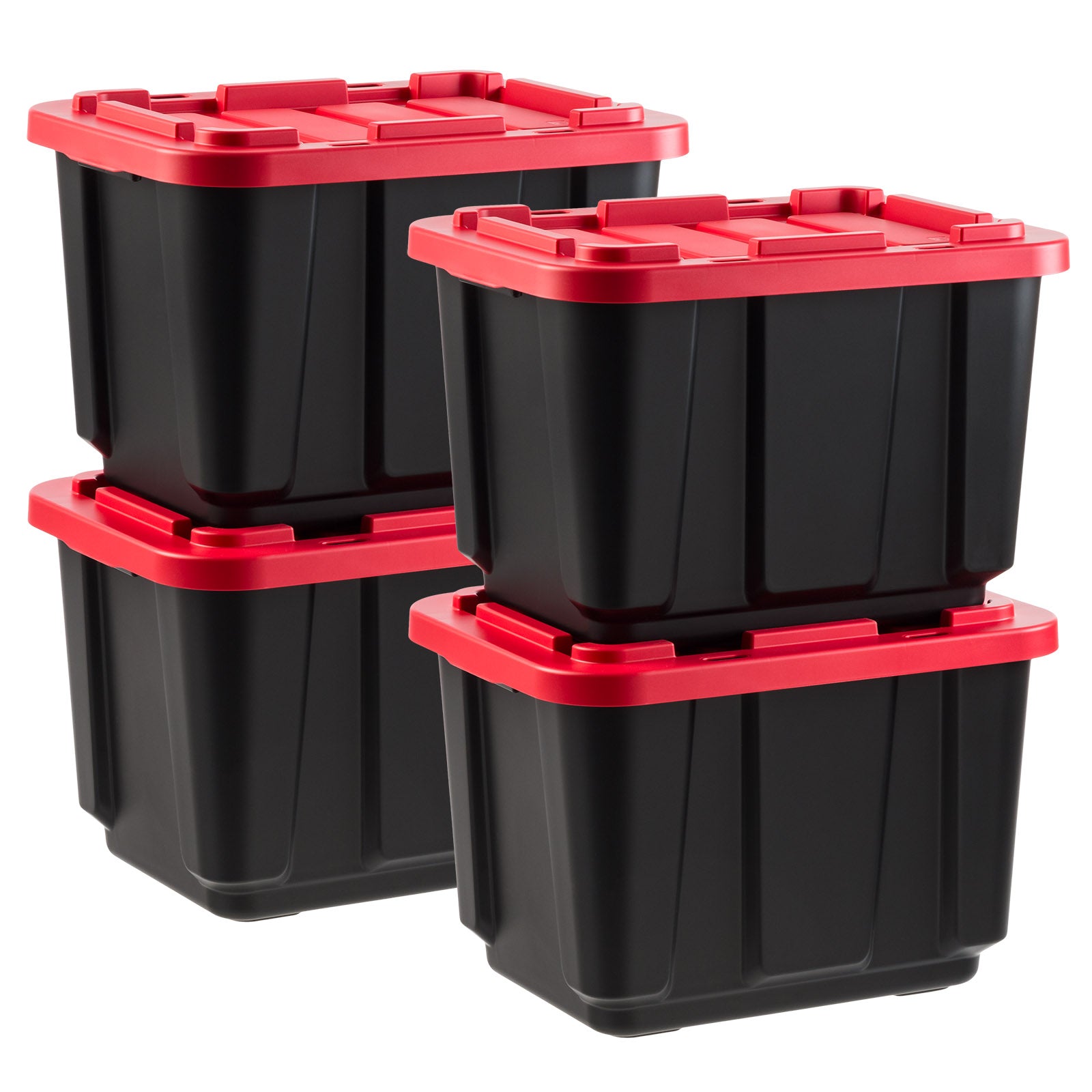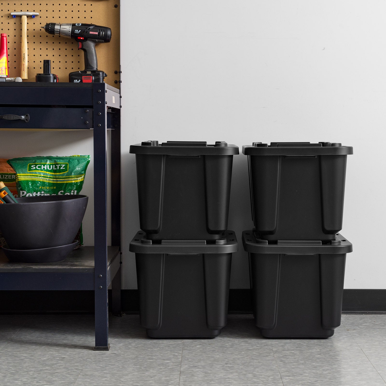 4-Pack 11.5-Gal / 46-Qt Heavy-Duty Stackable Storage Bins with Snap Lids ᄄC All-Weather Plastic Totes