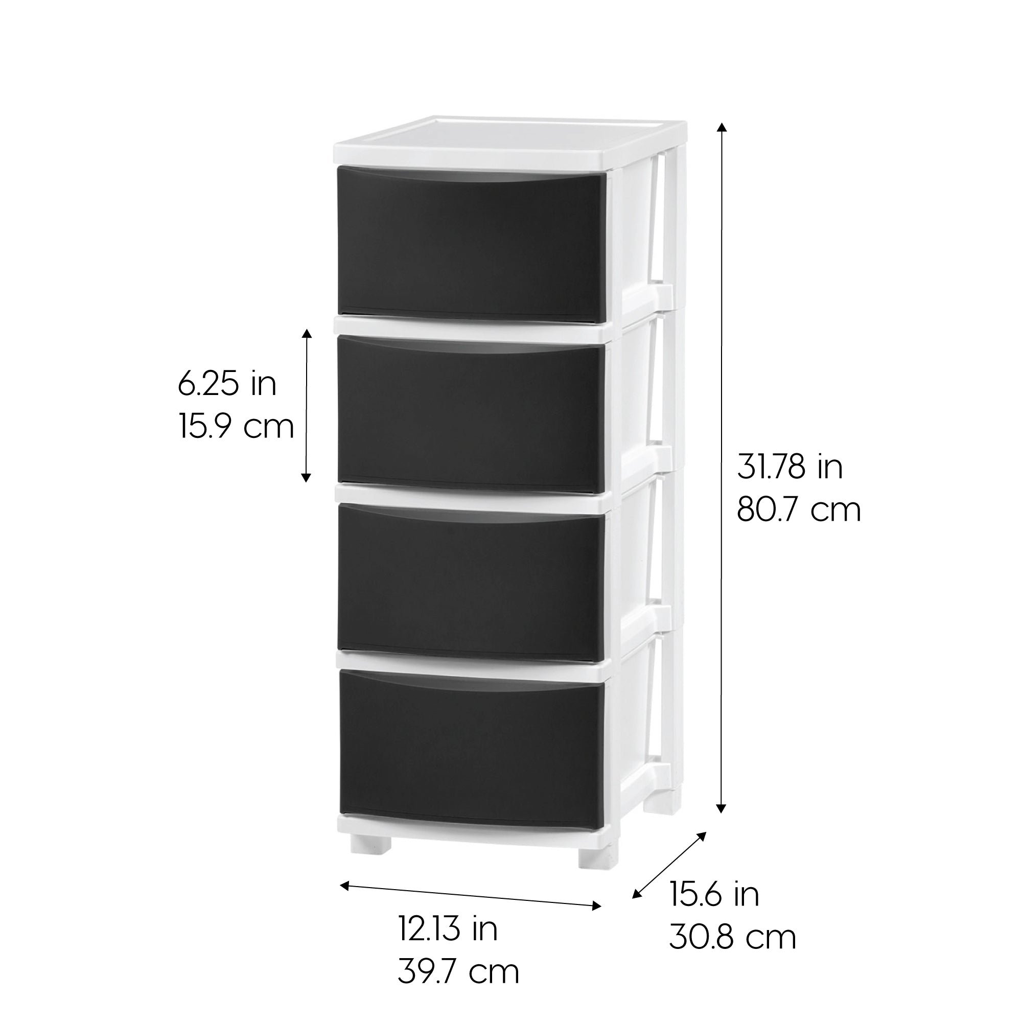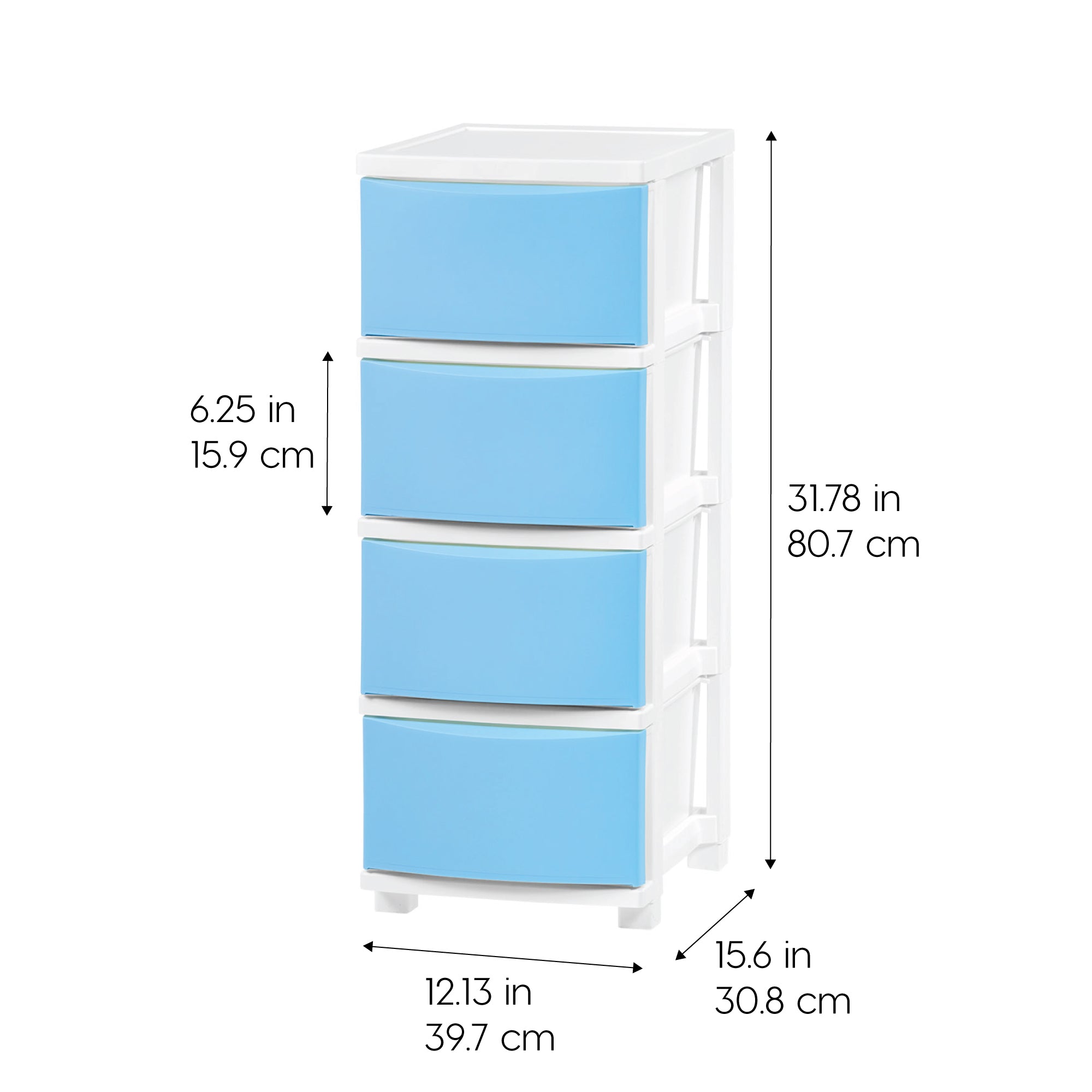 - OVERALL DIMENSION: The outside measurement is 15.63″ W x 12.13″ D x 31.78″ H (including optional leg caps). The measurement per drawer is 13.5″ W x 9.25″ D x 6.25″ H and 13.2 Quart; the total load capacity is 35.0 lbs. (including the weight tolerance of top lid).