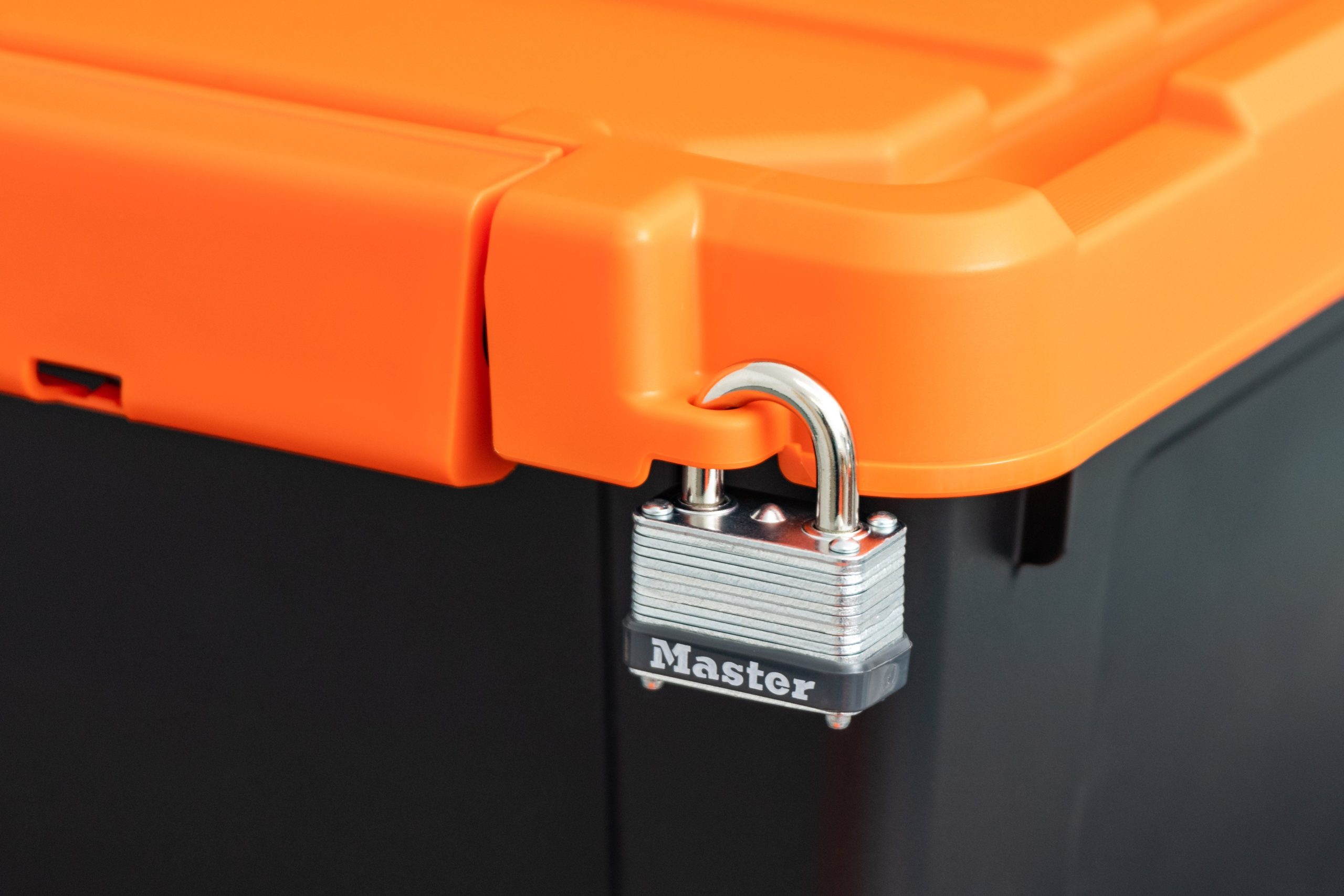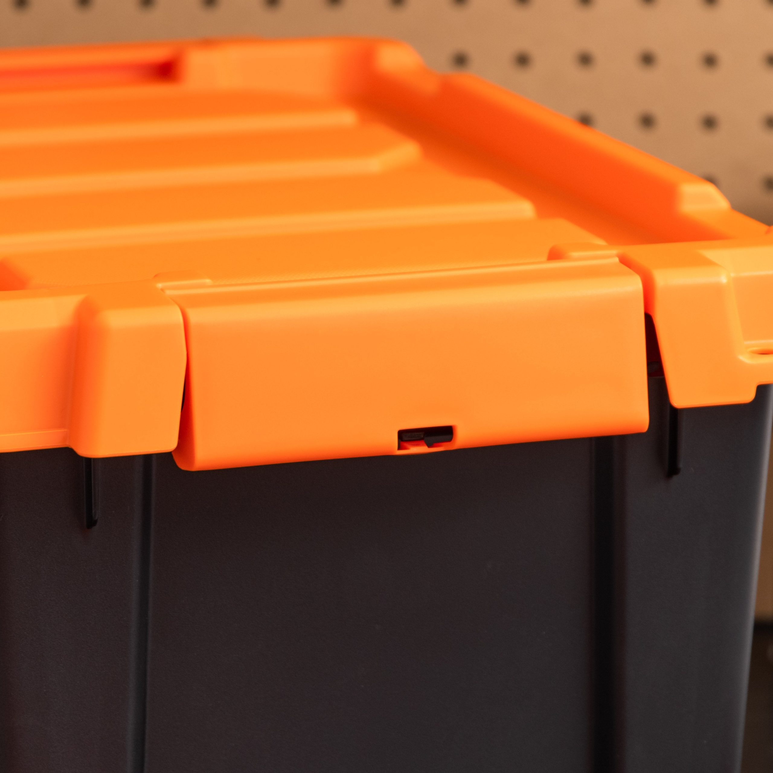 - Channel on the lid makes it easy to secure bin in place using a bungee cord or tie-down strap