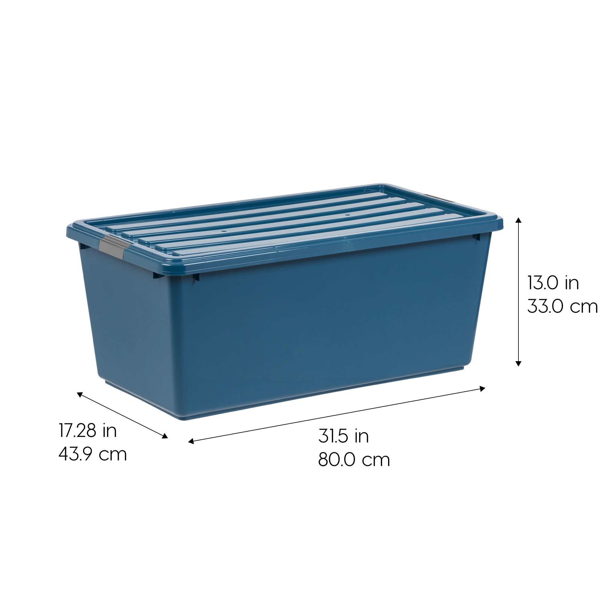 - MADE IN USA with global materials – The IRIS USA large storage bin tub is perfect for organizing and storing large items long term thanks to the latching buckles and sturdy design that keep contents safe and protected inside. The size of the storage box makes it great for storing your seasonal clothes and decorations and finding a space for items that you want to keep together such as camping or sports gear