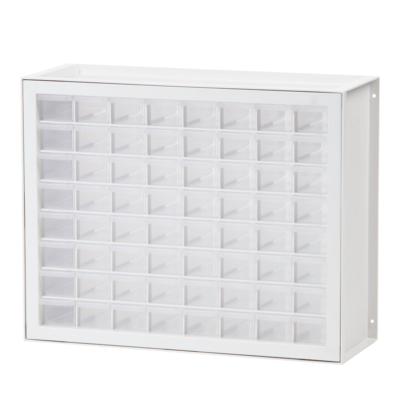 Screw holes on the sides of the drawer storage unit make it easy to mount to the wall