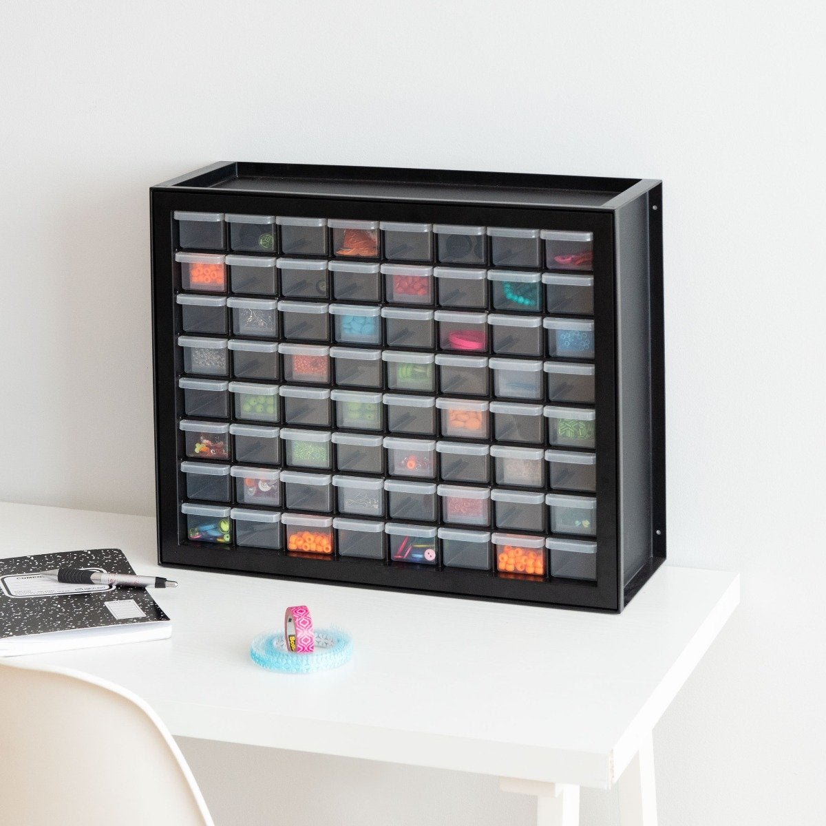 Multi-drawer cabinet is ideally sized for organizing hardware, beads, pens, and more