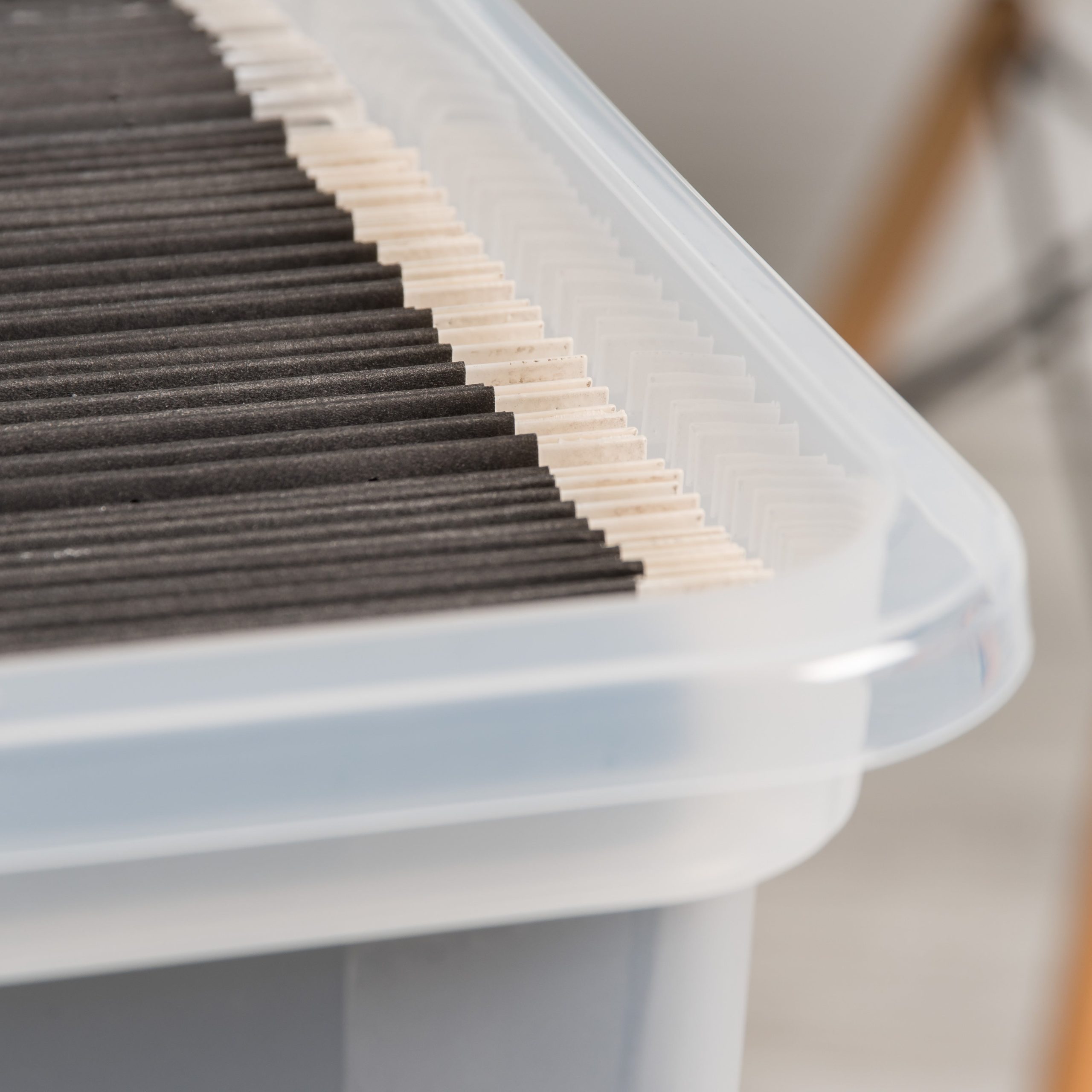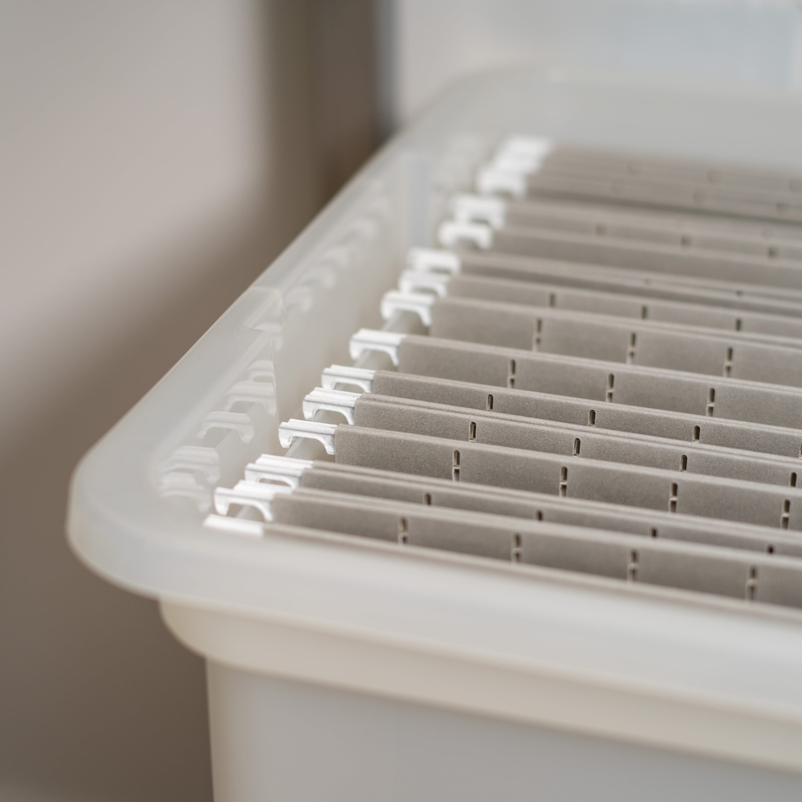 • Save space by stacking multiple hanging file boxes on top of each other