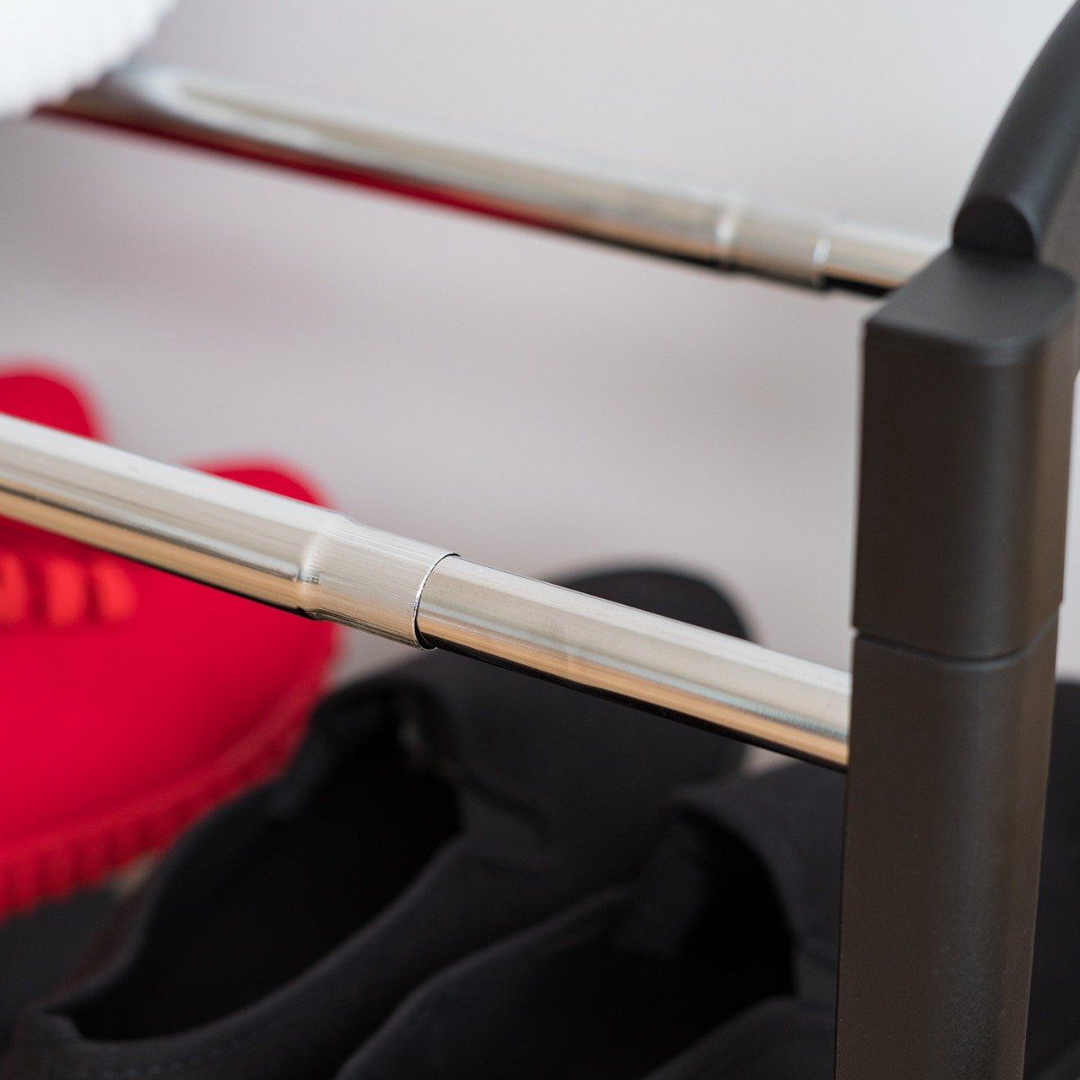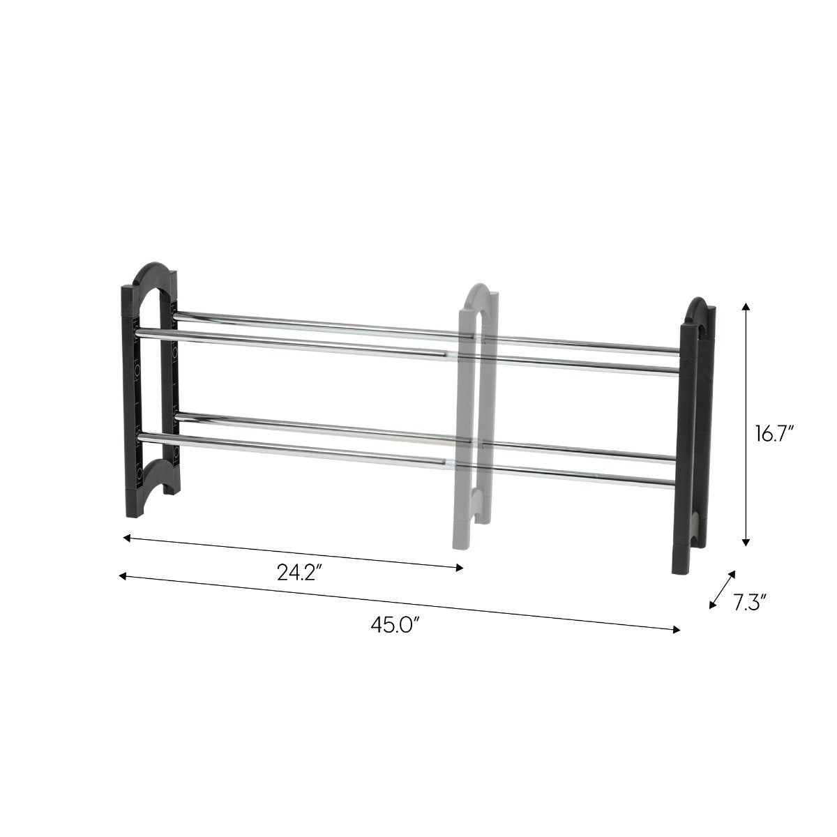 EXTENDABLE: Shoe rack organizer extends horizontally from 24 to 45 inches and hold 10 pairs of shoes when fully extended