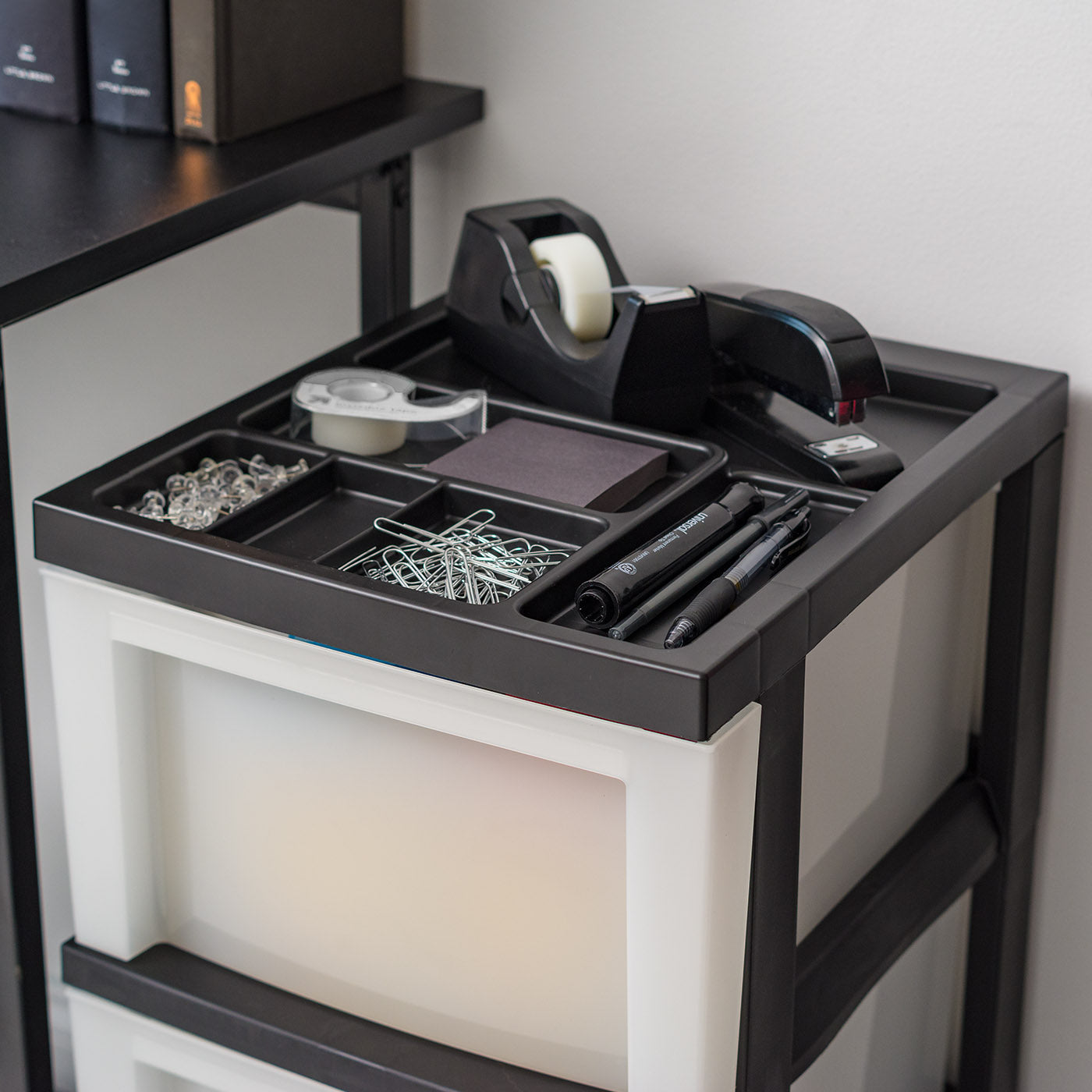 Plastic Storage-Drawer, Organizer-Cart, 6, Black/Pearl