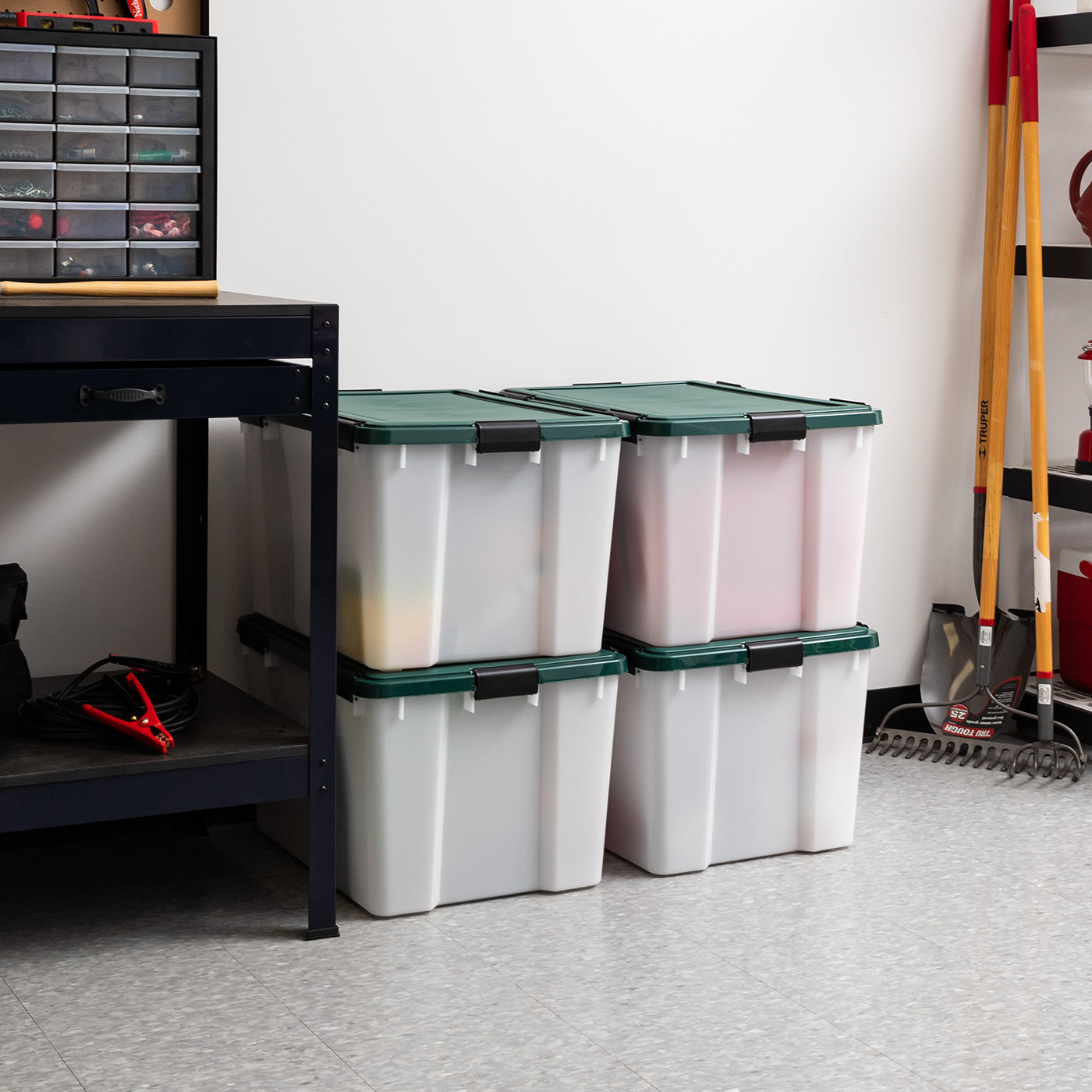 WEATHERPRO – IRIS Airtight Heavy Duty Garage Storage Bins with Lids are designed to protect your valuables. The heavy duty seal blocks out moisture, dust, and insects.