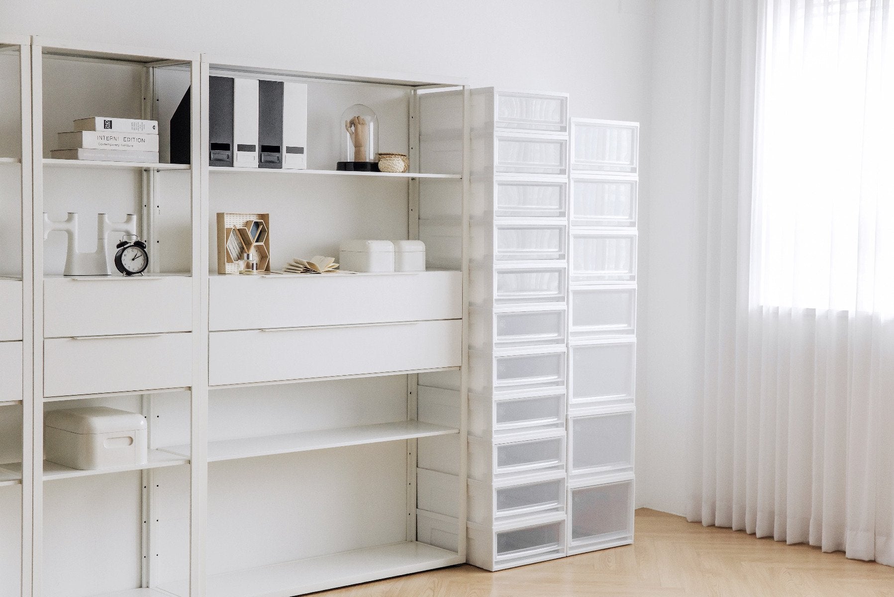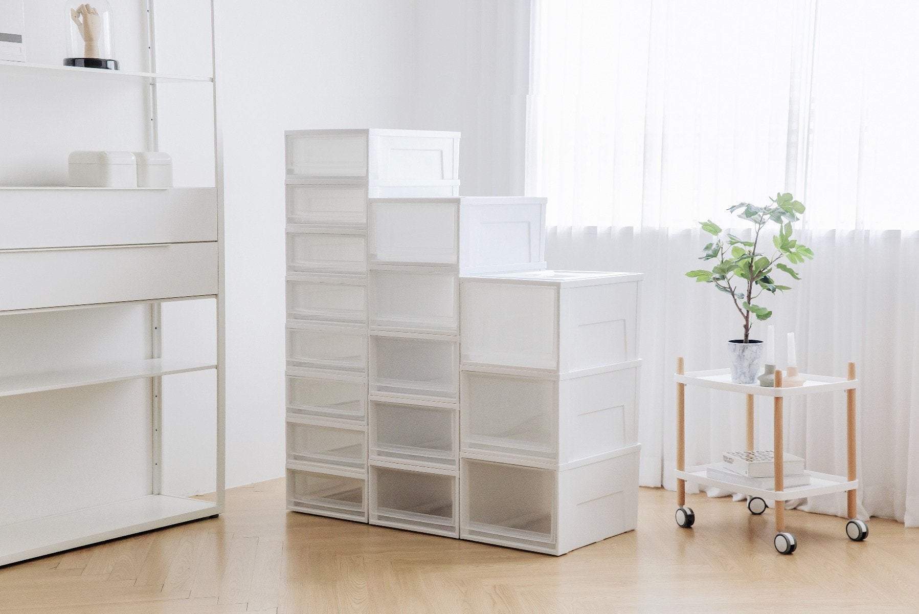 Stackable storage system organizes any room in the house.