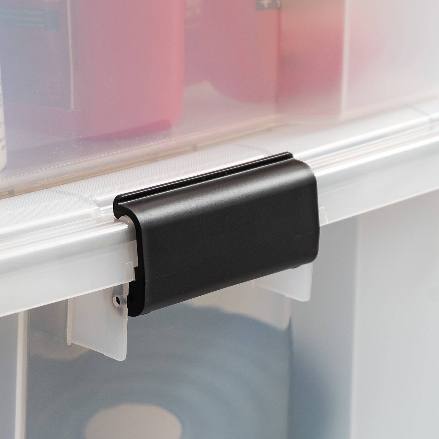 - 4 durable buckle latches on WeatherPro tote lid secure contents inside