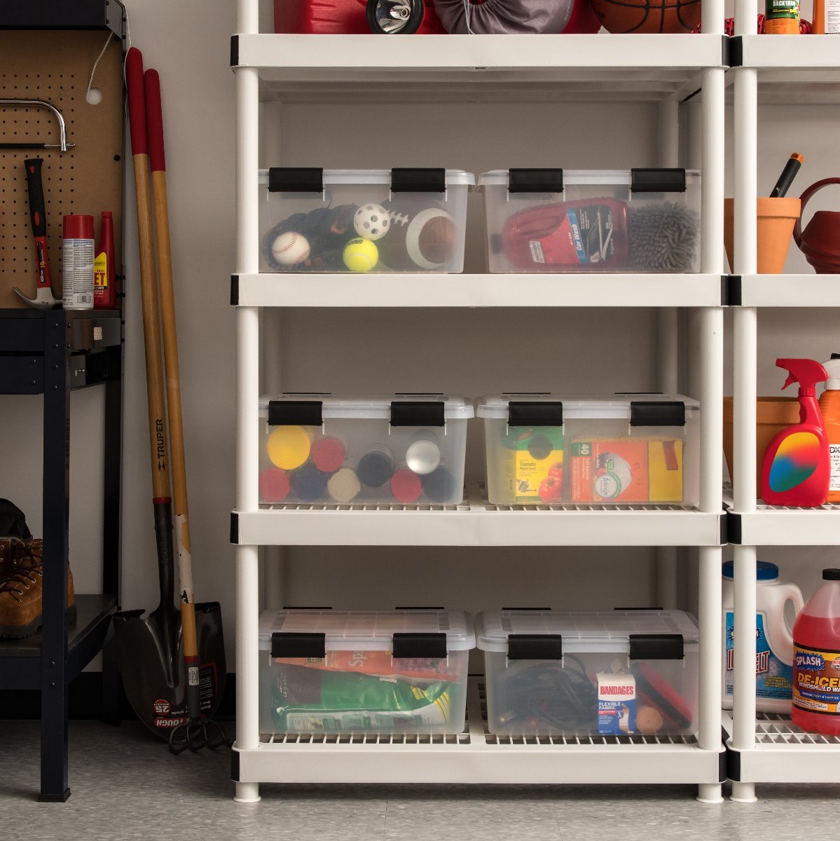 • WeatherPro ᄄC The IRIS USA WeatherPro Plastic Storage Bin has high quality heavy duty seals in the lids to block out moisture and dust.