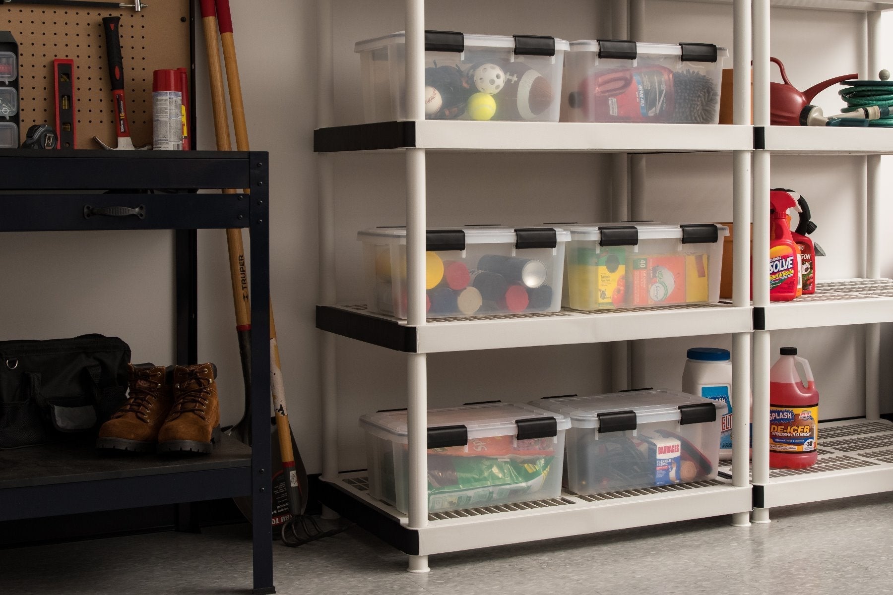 • BUCKLE UP LATCHING ᄄC The multi-buckle box latches securely onto the durable lid. Perfect for clothes storage, document storage, food storage, hunting gear storage, camping gear storage, tool storage, truck storage and other large items.