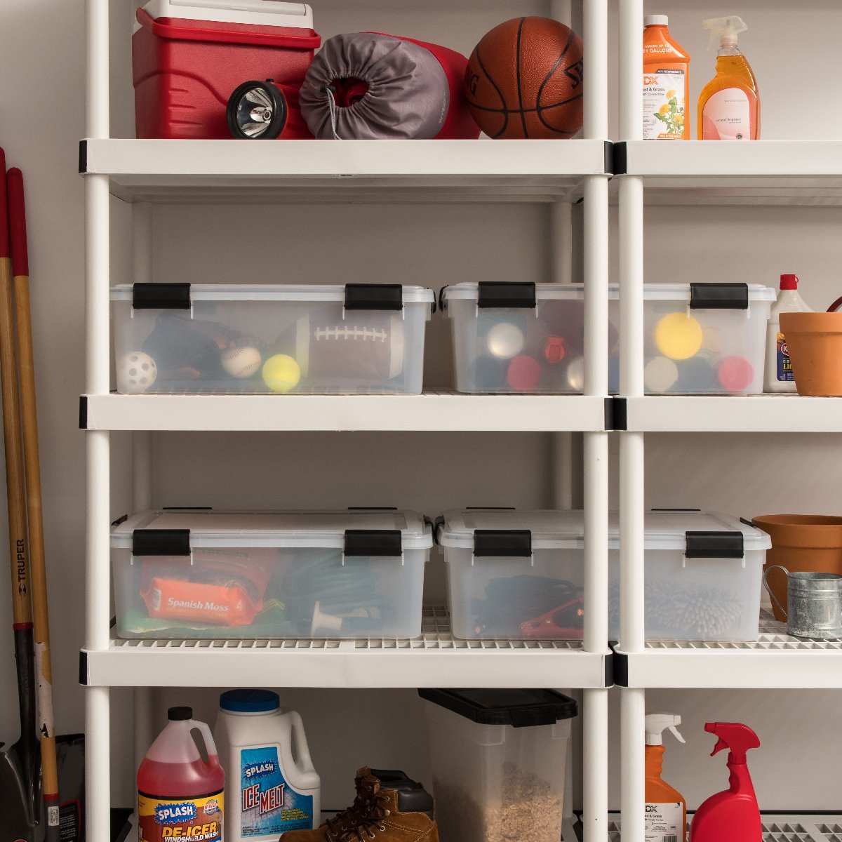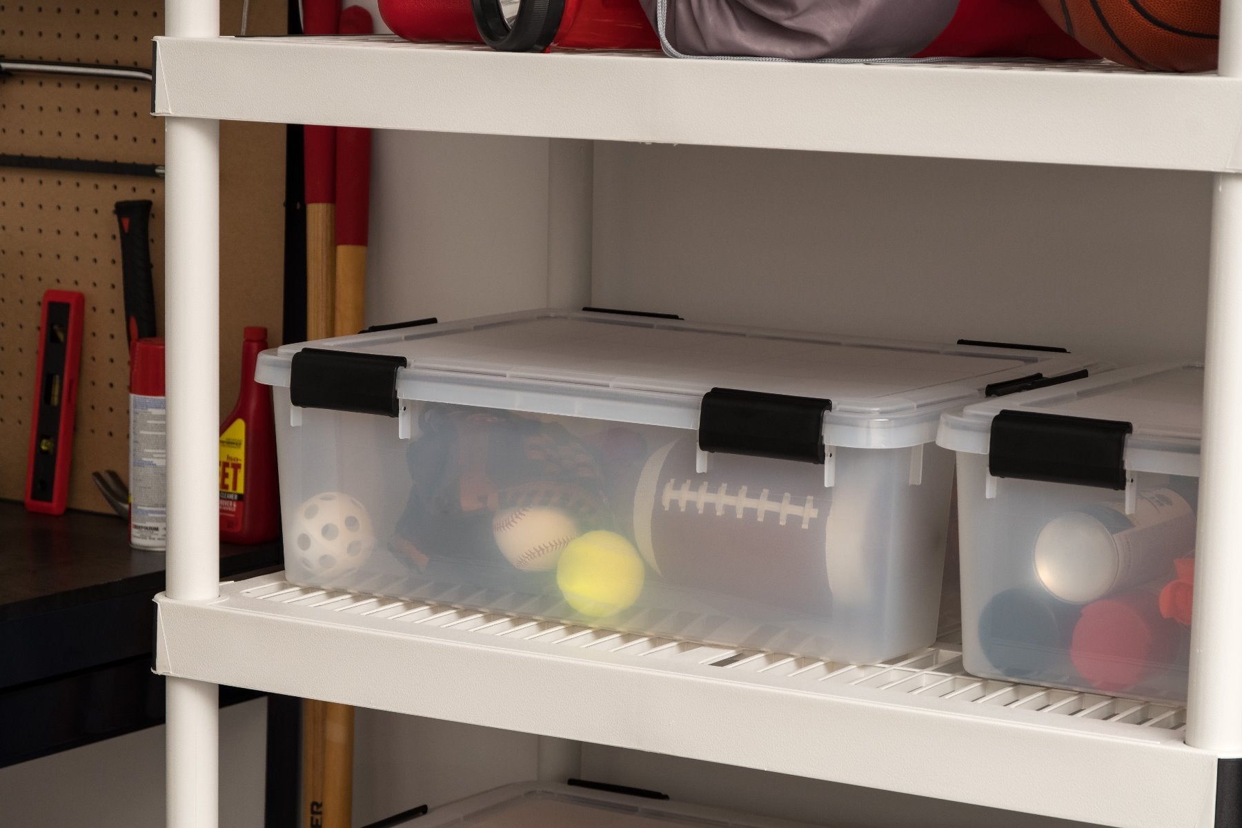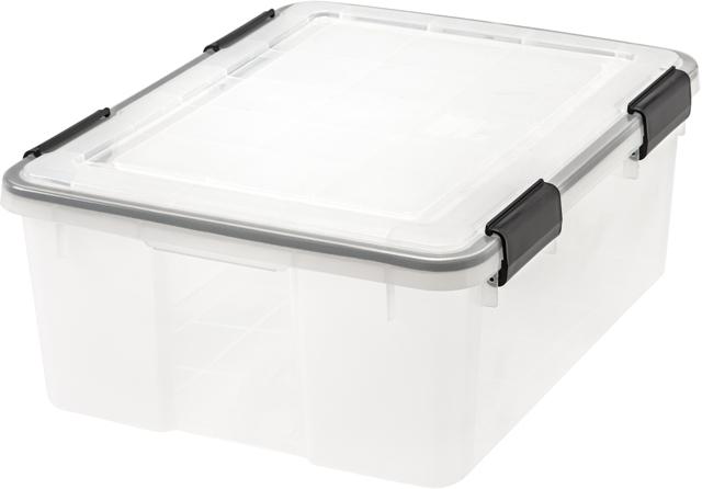 - WeatherPro ᄄC The IRIS USA WeatherPro Plastic Storage Bin has high quality heavy duty seals in the lids to block out moisture and dust.