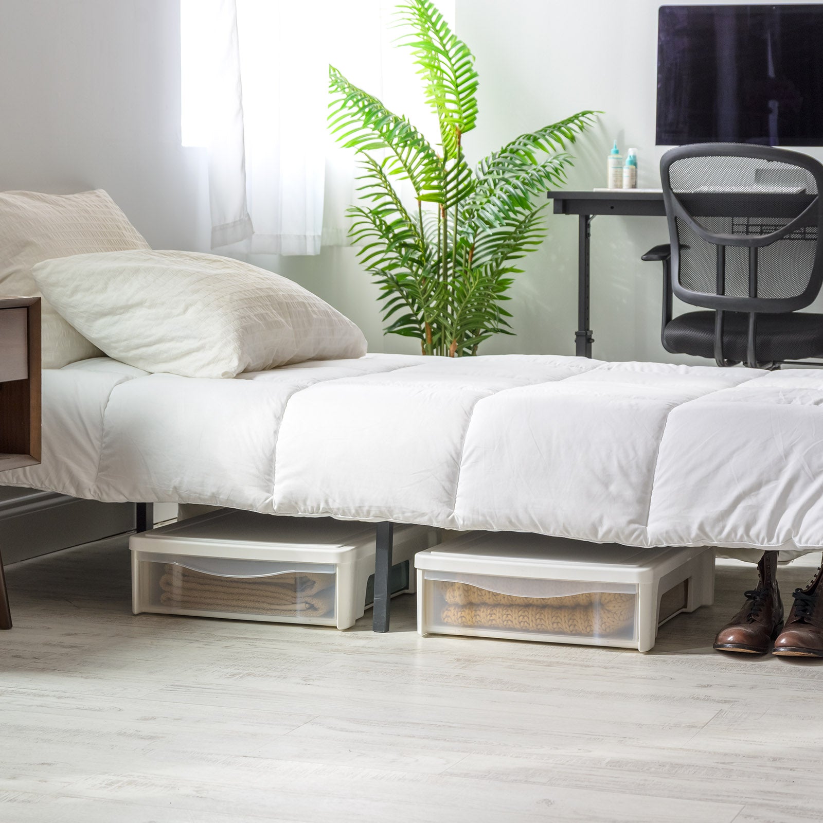 • UNDER THE BED: Designed to maximize storage space under the bed for shoe storage, clothing storage, bedding storage, wrapping paper storage, gift wrap and out-of-season essentials. Perfect organizer for tight spaces, bedroom and dorm storage.