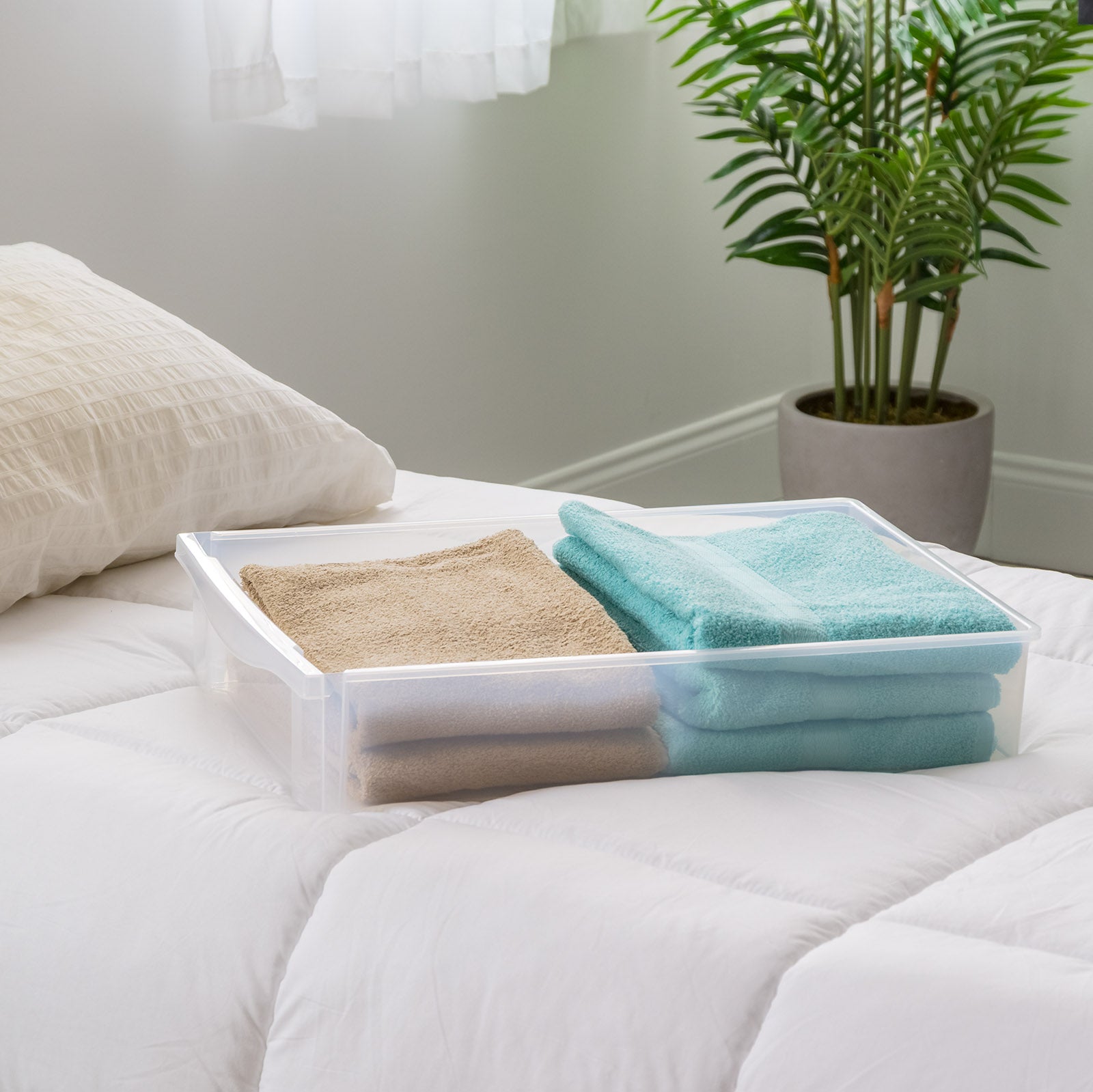 • SPACE / TIME SAVING: The storage tote was designed to fit under most beds to easily slide in and out for easy access to stored items, simply using the smooth-glide drawer. No need to open a lid and put it back to under the bed every time. Secure lids will ensure that all your items remain dry and dust-free.