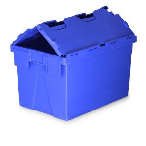 65 Litre Attached Lid Container Manufactured in the UK External measurements: 600 x 400 x 365h mm Internal measurements: 508 x 346 x 340h mm Weight: 3.5 Kg *Shown with label holder R00477 for illustration purposes only* Colour: Blue Material: Polypropylene
